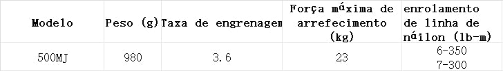 Corpo e carretel reforçados para resistir a grandes esforços e à corrosão marítima.