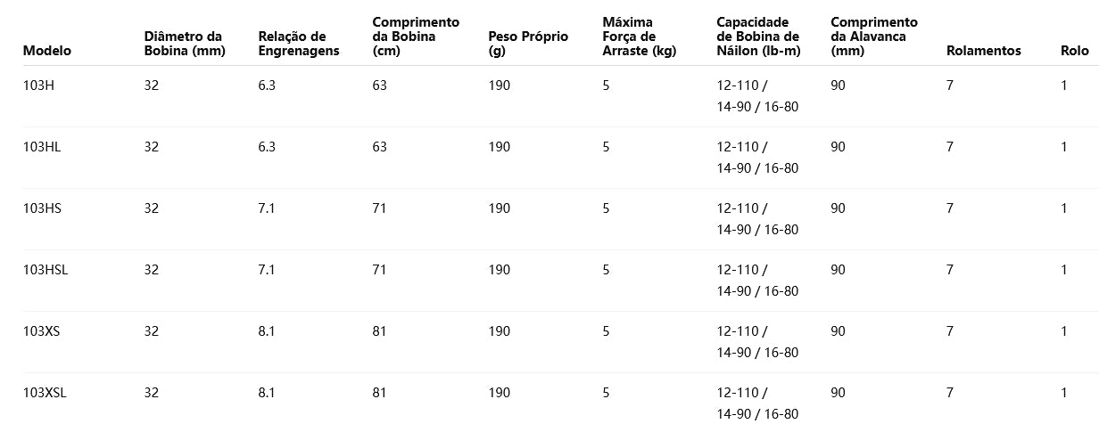 Sistema TWS (T-Wing System): reduz o atrito da linha durante o arremesso, aumentando a distância e evitando enroscos