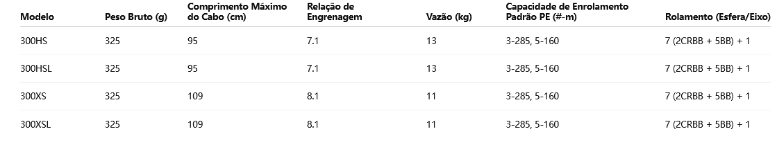 A Tatula 300HS é uma carretilha de perfil baixo desenvolvida para pescarias pesadas, oferecendo potência, durabilidade e desempenho excepcionais. Com relação de engrenagem de 7.1:1, ela entrega recuperação rápida de linha (95 cm por volta da manivela) — ideal para trabalhar iscas grandes como big baits, swimbaits e plugs de superfície com agilidade e eficiência.
