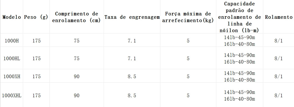 Capacidade de enrolamento: Compatível com linhas PE de No. 2.0 a 2.5 (cerca de 200 a 250 metros, dependendo da marca) e linhas de náilon de 16 a 20 lb (aproximadamente 120 a 150 metros), oferecendo flexibilidade para estratégias que requerem linha resistente para lidar com presas mais fortes.