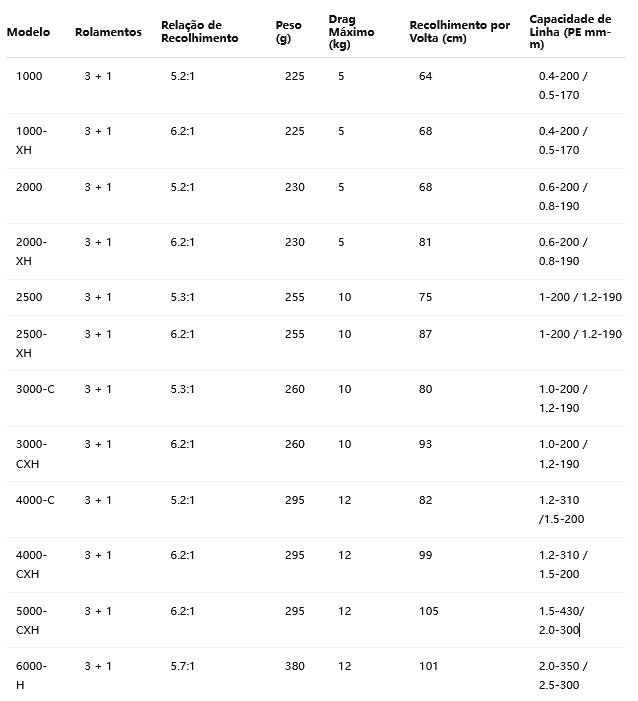 Construção LT (Light & Tough): Corpo leve, resistente e bem balanceado, ideal para longas pescarias.