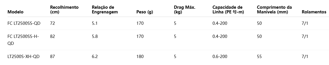 Recolhimento mais rápido que o modelo padrão, ideal para pescadores que desejam resposta mais ágil na fisgada. -