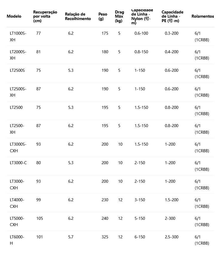 Relação de Recolhimento: 6.2:1 – ideal para pescas rápidas e reativas.