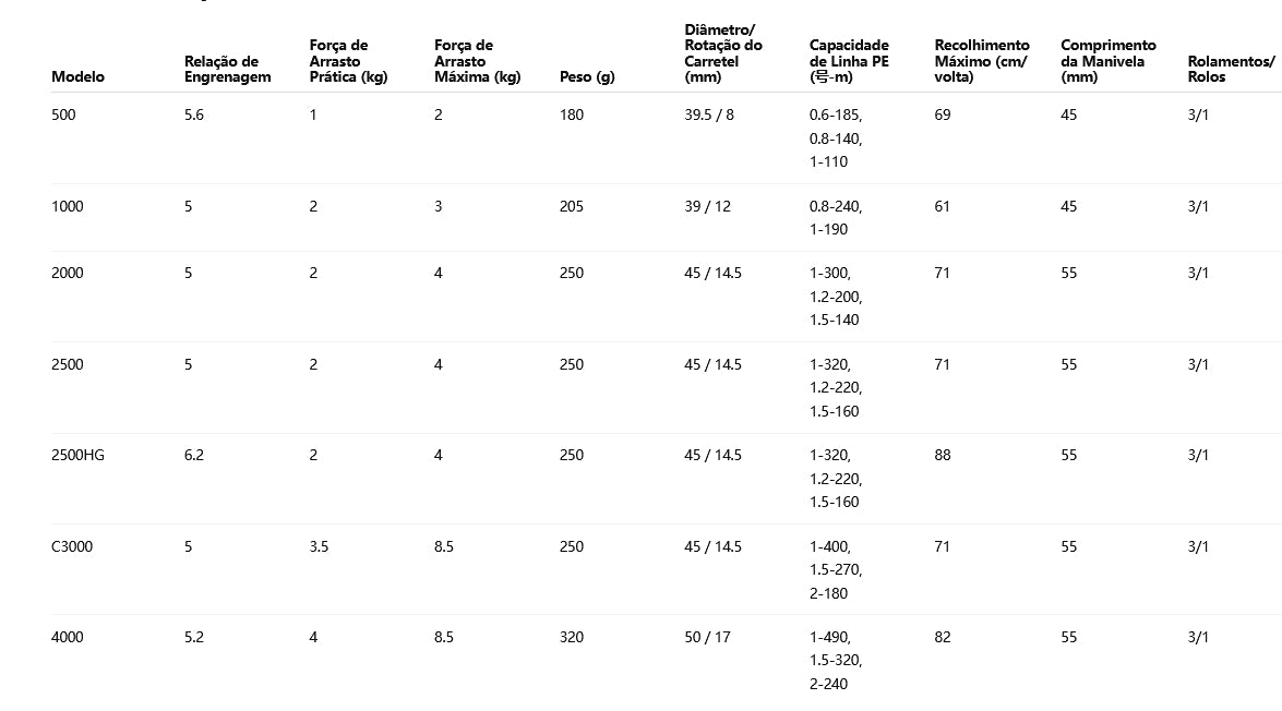 Recolhimento Máximo: 71 cm por volta da manivela – proporciona agilidade no trabalho da isca e controle na fisgada.