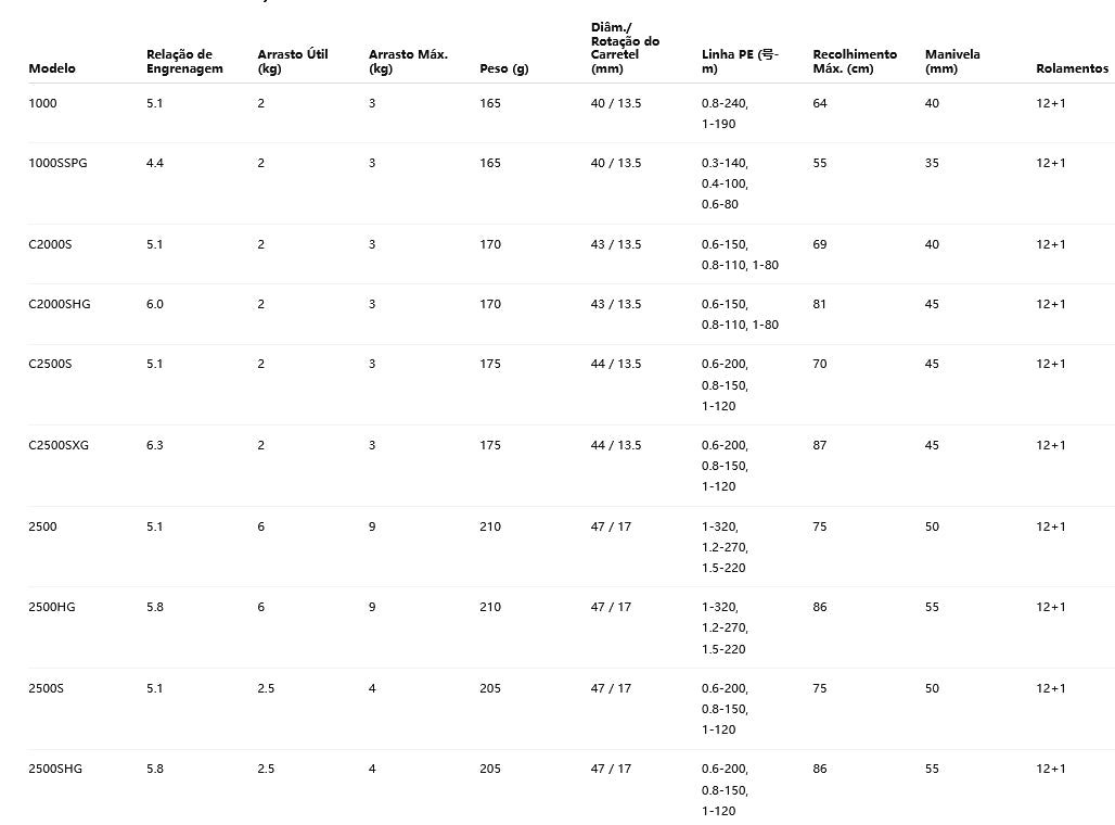G – Long Handle: manivela mais longa para maior torque e sensibilidade