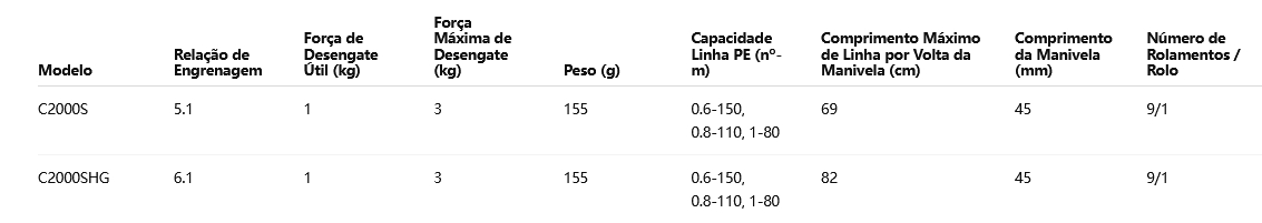 Tamanho: C2000S (carretel raso, ideal para linhas finas)