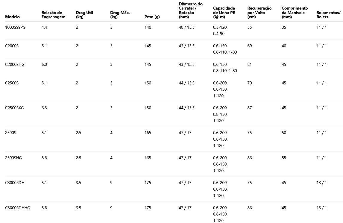 O destaque da C2000SHG é sua relação de recolhimento alta (High Gear) de 6.0:1, que permite um recolhimento ágil de 81 cm por volta da manivela — perfeita para pescarias ativas, onde velocidade de resposta faz a diferença.