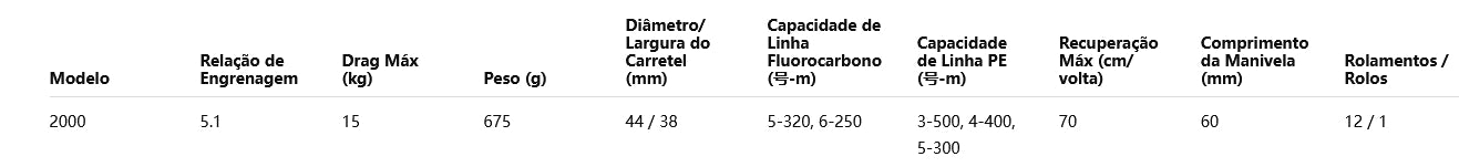 Drag máximo: 15 kg – força para controlar grandes capturas.