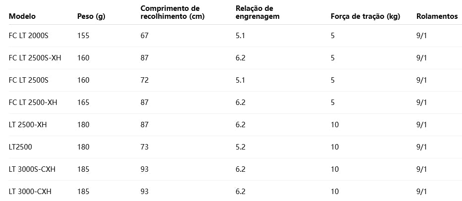 Com seu carretel raso e recolhimento extra rápido, o LT 3000S-CXH é perfeito para pescarias que exigem precisão no arremesso e velocidade de recolhimento, especialmente com iscas menores ou em ambientes onde a resposta do peixe é agressiva e imediata.