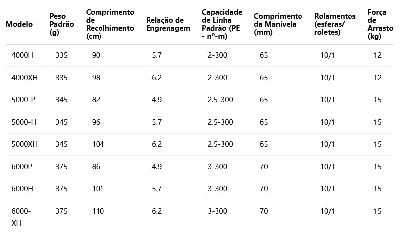 Apesar da sua velocidade extrema, o 6000-XH não sacrifica força: ele entrega uma força de arrasto de até 15 kg, proporcionando controle total mesmo em combates com peixes grandes e combativos.