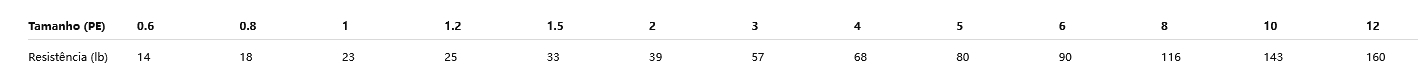 Marcação multicolorida (10 cores alternadas a cada 10 m): facilita a medição rápida da profundidade e o controle do comprimento lançado.
